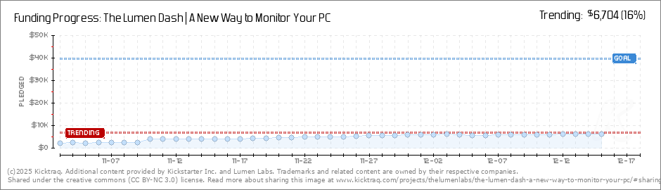 Help your backers reach your daily goals and help others see how you're doing. It's easy, with Kicktraq Mini.Here are a few quick snippits of code you can use to embed your personalized widget on your website, in your blog, and even on your favorite forum.