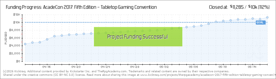 Hello to everyone - once again! Let me start by saying - THANK YOU! to everyone that has backed AcadeCon 2017 so far. As of the time I'm writing this we are at 98% to goal with 7 days and a few hours to go. Things are looking really good, but lets... (Read More)