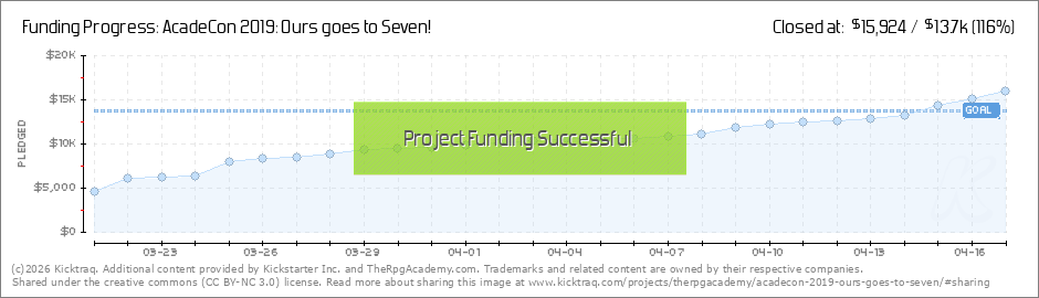 Still almost 3 whole days left. Now that we've funded AcadeCon 2019 is a go! but that doesn't mean we can't keep this thing rolling. We're still offering discounted badges so anyone who wants in, now's the time. more soon! Michael (Read More)