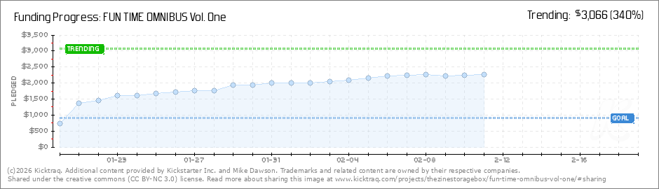 Help your backers reach your daily goals and help others see how you're doing. It's easy, with Kicktraq Mini.Here are a few quick snippits of code you can use to embed your personalized widget on your website, in your blog, and even on your favorite forum.