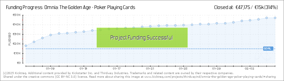 Hello backers! we reached 42,000€ (hooray!) and the surprise is finally revealed: "The Origin" extra joker unlocked! This extra joker will be a loose card (outside the decks) with the same colors as Omnia Magnifica, and represents the couple who... (Read More)