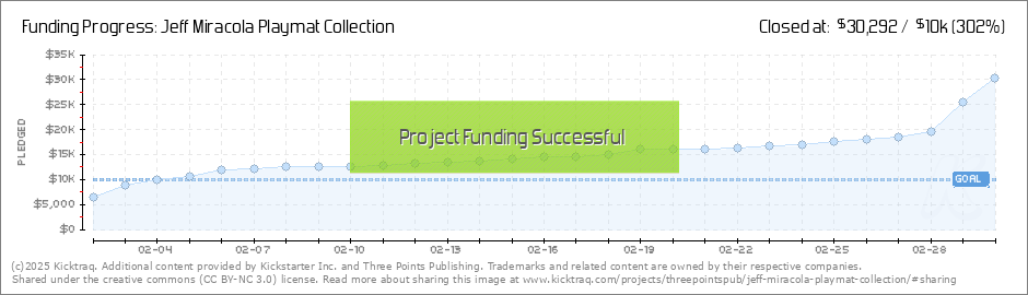 Thank you backers! We've reached our funding goal.What does that mean?It means the initial six Magic: The Gathering playmats, and three personal art playmats, offered in this campaign are definitely getting made. Backers will now be able to choose... (Read More)