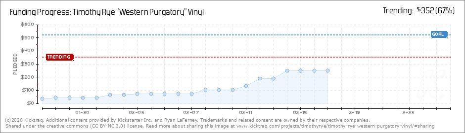Thank you all kindly for your support! We have 14 days left to go, and we are 36% of the way funded! The album has been sent to Jason Lamoreaux to be mastered. So, we are on our way towards the final product! Thanks for all your help and support.... (Read More)