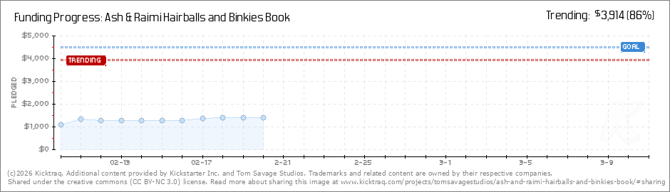 Help your backers reach your daily goals and help others see how you're doing. It's easy, with Kicktraq Mini.Here are a few quick snippits of code you can use to embed your personalized widget on your website, in your blog, and even on your favorite forum.