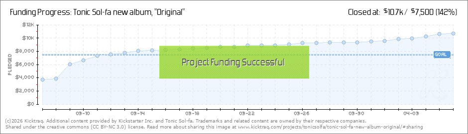 Wow! We are amazed (yet not overly surprised, considering our fans are the best) at the response to our Kickstarter campaign. In the first 4 days, you managed to fund 84% of our Kickstarter campaign to help us make the new album! That breaks down to... (Read More)