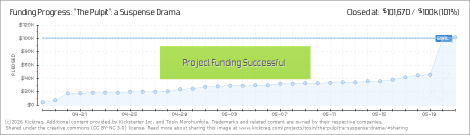 Greetings Friends and Fans of "THE PULPIT"! As we end our 2nd week of funding our new social justice thriller, I just wanted to update you with gratitude! So far we've raised $27,000 and that all thanks to YOU! But we still have a ways... (Read More)