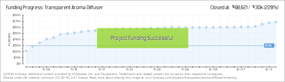 We are incredibly grateful for the response and support you've shown us in these first few days. Thanks to you, the Aroma Diffuser is now 146% funded. Sharing a project you've worked on for years is always an exciting and deeply personal moment.... (Read More)