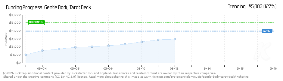 Help your backers reach your daily goals and help others see how you're doing. It's easy, with Kicktraq Mini.Here are a few quick snippits of code you can use to embed your personalized widget on your website, in your blog, and even on your favorite forum.