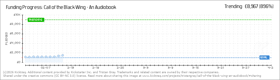 The Kickstarter for 'Call of the Black Wing' Audiobook launches tomorrow! Thank you for backing this project early, the momentum of the first few days is incredibly important. With 48 people following the project already could you share it with... (Read More)