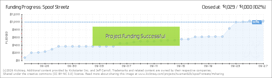 Help your backers reach your daily goals and help others see how you're doing. It's easy, with Kicktraq Mini.Here are a few quick snippits of code you can use to embed your personalized widget on your website, in your blog, and even on your favorite forum.