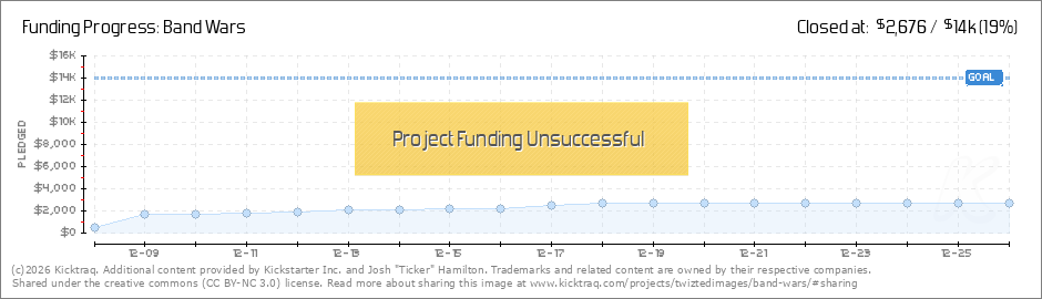 Help your backers reach your daily goals and help others see how you're doing. It's easy, with Kicktraq Mini.Here are a few quick snippits of code you can use to embed your personalized widget on your website, in your blog, and even on your favorite forum.