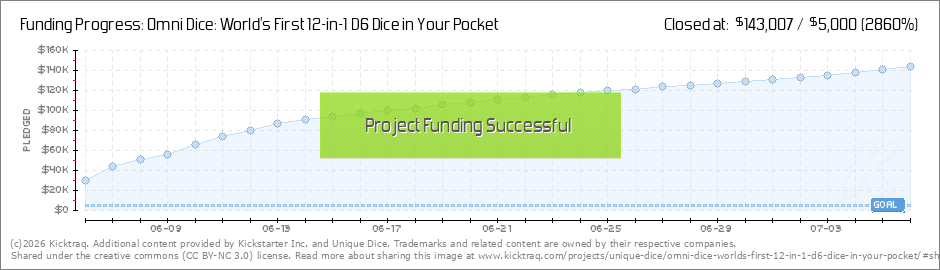 ❤️ Thank You! We made it! Dear Omni Dice backers, Our Kickstarter Campaign has come to an end. With the love and support from all of you, we reached the goal of $143, 007 with 1,678 backers eventually. THANK YOU SO MUCH for helping us... (Read More)