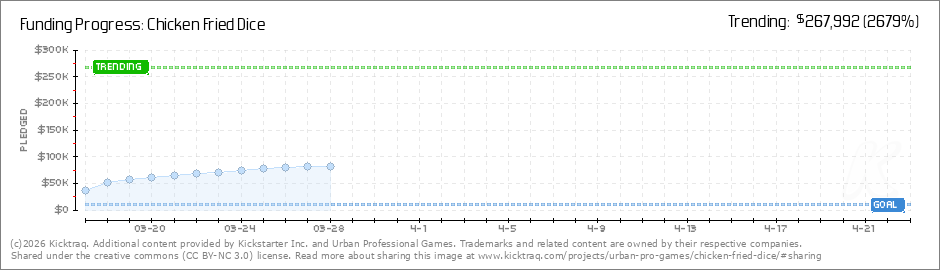 We're funded!!! Over 600% funded to be exact, with nearly 800 backers. That's incredible! Thank you again to all of you for supporting Chicken Fried Dice and choosing to back this game! It has been an exciting first week. We're excited to see the... (Read More)