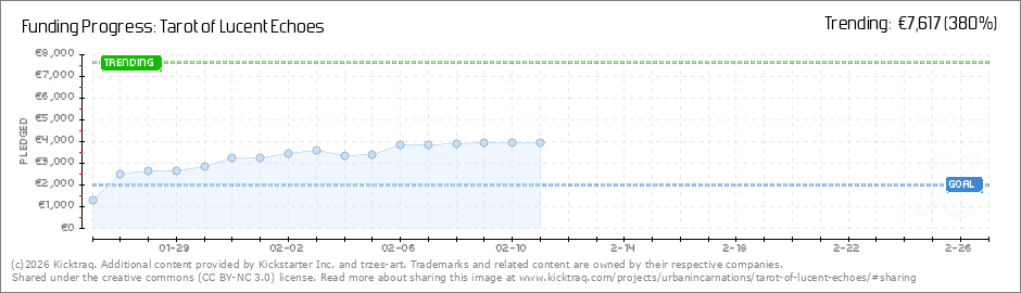 Help your backers reach your daily goals and help others see how you're doing. It's easy, with Kicktraq Mini.Here are a few quick snippits of code you can use to embed your personalized widget on your website, in your blog, and even on your favorite forum.