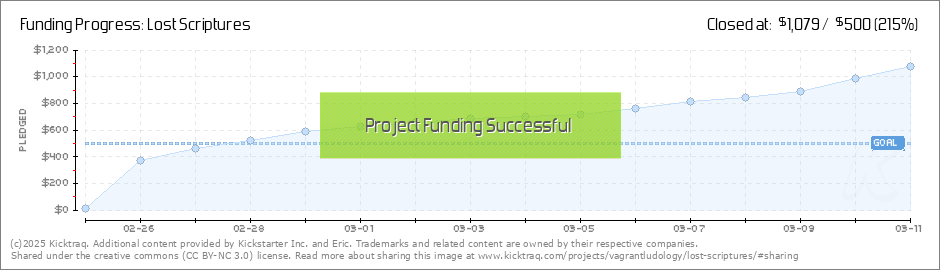 After just over two days, Lost Scriptures is funded! I can't quite believe it. Thank you so much to all of you who have chosen to support this weird little project of mine. Seeing the conversation and excitement that's already been sparked by it has... (Read More)