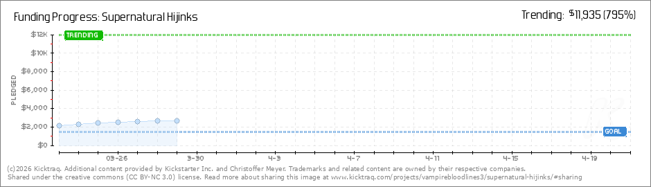 Help your backers reach your daily goals and help others see how you're doing. It's easy, with Kicktraq Mini.Here are a few quick snippits of code you can use to embed your personalized widget on your website, in your blog, and even on your favorite forum.