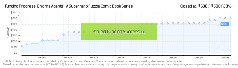 Already the Kickstarter is well on its way to success with many days to go! To keep the forward momentum, I'd like to announce that if the Enigma Agents Kickstarter reaches $750 I will be mailing a free bonus comic to all backers of the campaign. I... (Read More)