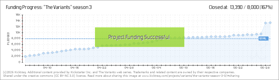 There is still time to help fund The Variants™ season three. Right now, our Kickstarter goal has been reached, but we're still trying to get enough funding to produce four additional episodes for this season. Spread the word about The Variants™... (Read More)
