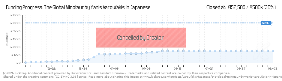 Dear Backers, Thank you for backing our project of publishing the Japanese translation of Yanis Varoufakis's The Global Minotaur. Despite our best efforts, unfortunately we were not able to win enough support on Kickstarter to reach our 500,000JPY... (Read More)