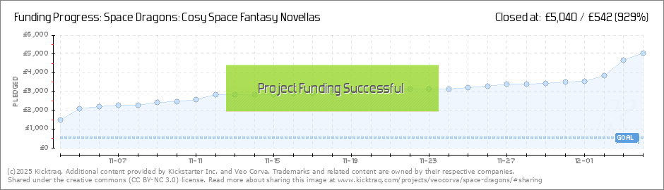 A very professional chart of the campaign's progress, for business purposes. Hello lovely readerfolk,We're now into the final week of the Kickstarter campaign, and the last chance to reach the final stretch goal and unlock an audiobook of Space... (Read More)
