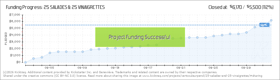 Aujourd'hui lundi: mon projet de livre 25 SALADES & 25 VINAIGRETTES est devenu l'un des coups de coeur de Kickstarter et pour ajouter au bonheur, plus de la moitié du projet est maintenant financé avec un gros 61%. Un gros gros MERCI à vous... (Read More)