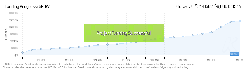 Sorry for yet another update. Don't unsubscribe from the updates if possible! I'll take a break for a few days. HELLO! Greetings new backers!! Today we became a Kickstarter official "Project We Love" which means a lot more people will discover GROWL... (Read More)