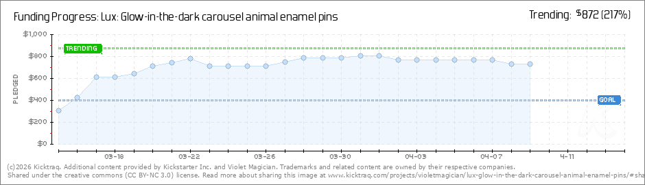 Help your backers reach your daily goals and help others see how you're doing. It's easy, with Kicktraq Mini.Here are a few quick snippits of code you can use to embed your personalized widget on your website, in your blog, and even on your favorite forum.