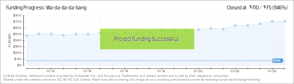 Help your backers reach your daily goals and help others see how you're doing. It's easy, with Kicktraq Mini.Here are a few quick snippits of code you can use to embed your personalized widget on your website, in your blog, and even on your favorite forum.