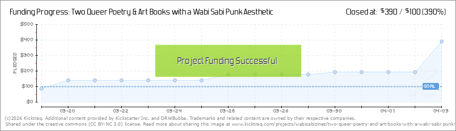 Help your backers reach your daily goals and help others see how you're doing. It's easy, with Kicktraq Mini.Here are a few quick snippits of code you can use to embed your personalized widget on your website, in your blog, and even on your favorite forum.