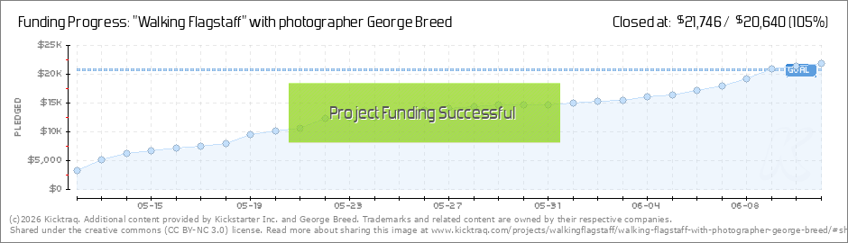 To friends, followers, and backers of the Walking Flagstaff book project: This campaign is close to reaching its target, with just over 48 hours to go. Not to jinx anything, but it looks like our community is about to make this book possible. We are... (Read More)