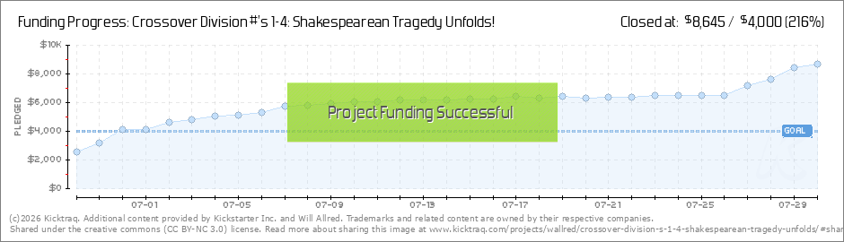 Thank you so much for supporting us and backing Crossover Division! We are officially $1 past our total for Crossover Division #3! And, we still have 2 full weeks left in this campaign! I am truly grateful for all of your support. Again, thank you so... (Read More)