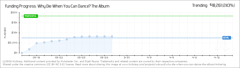 Help your backers reach your daily goals and help others see how you're doing. It's easy, with Kicktraq Mini.Here are a few quick snippits of code you can use to embed your personalized widget on your website, in your blog, and even on your favorite forum.