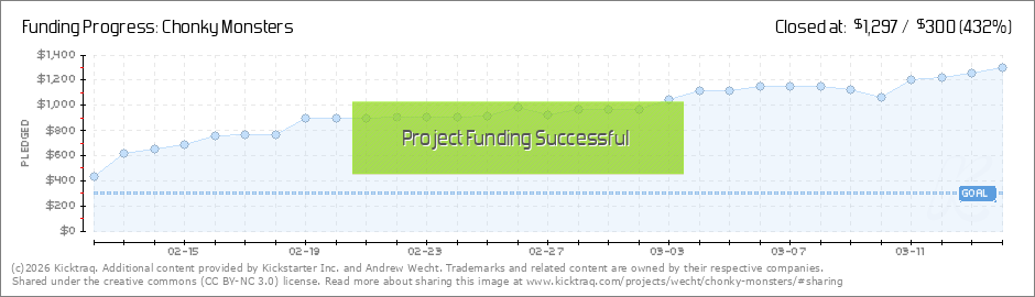 A Chonky Beginning In less than 3 hours we have smashed our funding goal and within the first 24 hours we are half way to our first stretch goal mystery monster! Thank you early birds so much for joining us on this wild journey. A stellar start to... (Read More)