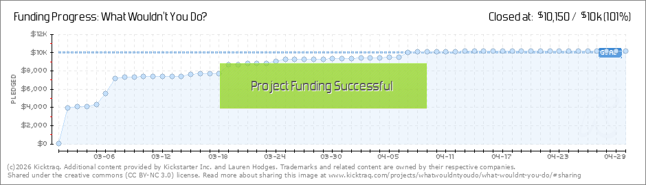 This is absolutely tremendous! We are so close to meeting our goal of $10,000!!! The full amount needed to fund the project is $40,000 but we wanted to begin with a modest ask to kick up some interest. I am so incredibly grateful for all the pledges... (Read More)
