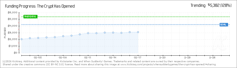 Day 2We have entered the second day of the campaign! Do you feel the skeletal grasp of the Crypt yet? I sure do.As of writing this we're $5 away from 50% funded! What a fantastic first 24 hours. I feel confident that'll we will hit our funding goal... (Read More)