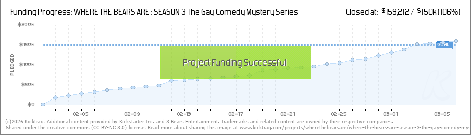 We just crossed the $70,000 mark, and are thrilled to be almost 50% funded halfway through our campaign. 782 generous people have jumped on board to help us do a Season 3, and we just can't thank them enough. But, we have a LONG WAY TO GO to get to... (Read More)