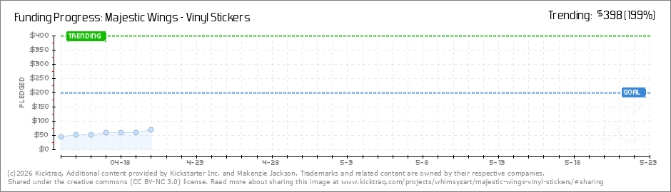 Help your backers reach your daily goals and help others see how you're doing. It's easy, with Kicktraq Mini.Here are a few quick snippits of code you can use to embed your personalized widget on your website, in your blog, and even on your favorite forum.