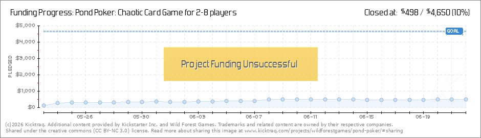 Hello Pond Poker Backers! Thank you all for your support. We are down to less than a week and have quite a ways to go. Please share Pond Poker to help bring our card game to life. As always we are open to any and all suggestions. Even if we... (Read More)