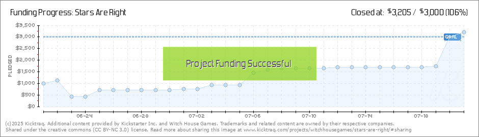 Hello everybody! Thank you all for backing Stars Are Right! As we move into the later half of our campaign I would only ask that you continue to share this project with others! More updates to come! Witch House Games (Read More)