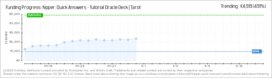 Help your backers reach your daily goals and help others see how you're doing. It's easy, with Kicktraq Mini.Here are a few quick snippits of code you can use to embed your personalized widget on your website, in your blog, and even on your favorite forum.