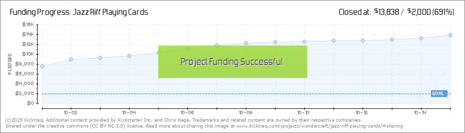 Dear Backers, We are absolutely thrilled by the incredible response to Jazz Riff Playing Cards! In just six hours, we’ve raised over $6,000 and exceeded our funding goal. We couldn’t have done it without your support, and we’re deeply grateful... (Read More)