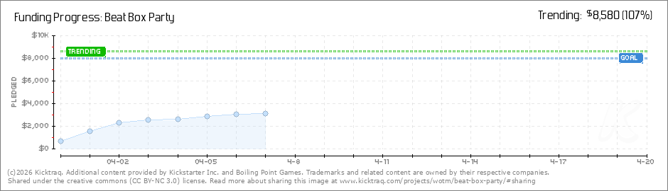 Help your backers reach your daily goals and help others see how you're doing. It's easy, with Kicktraq Mini.Here are a few quick snippits of code you can use to embed your personalized widget on your website, in your blog, and even on your favorite forum.