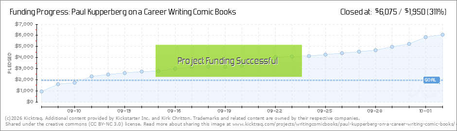 Wow!! Only a couple of hours into our first day and we're nearly 15% funded. Our thanks to all of the fast funders who have gotten us off to such a strong start. Don't forget to grab your free "Kupperberg Kickstarter Comics Sampler." All you need to... (Read More)