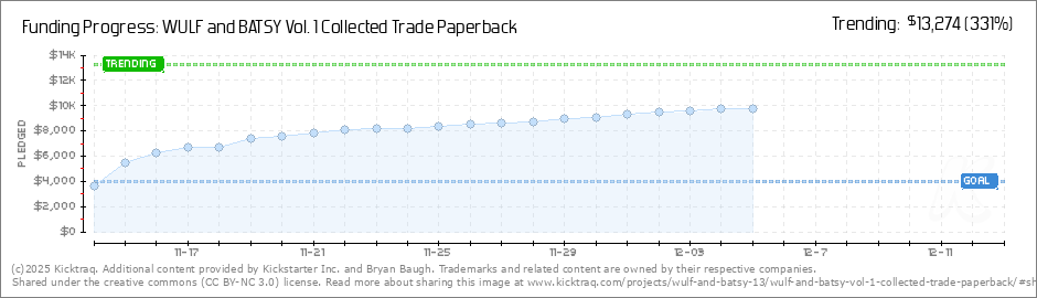 Help your backers reach your daily goals and help others see how you're doing. It's easy, with Kicktraq Mini.Here are a few quick snippits of code you can use to embed your personalized widget on your website, in your blog, and even on your favorite forum.