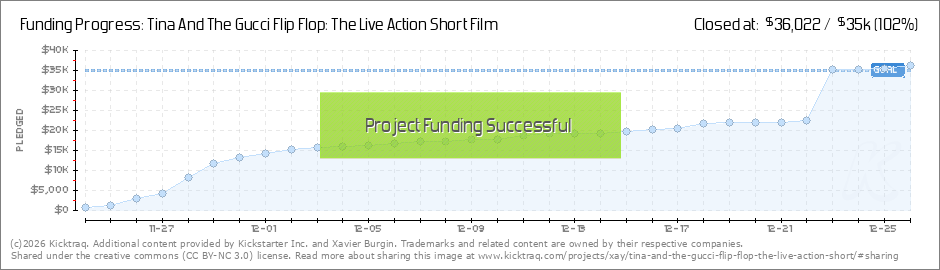 Good morning everyone! Today marks DAY 3 of the Tina & The Gucci Flip Flop Kickstarter campaign! We're over the $3000 mark! Today, we want to hit $4500 by the end of the day! So here's a great reason why you should tell your friends and family... (Read More)