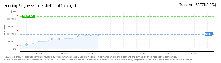 Help your backers reach your daily goals and help others see how you're doing. It's easy, with Kicktraq Mini.Here are a few quick snippits of code you can use to embed your personalized widget on your website, in your blog, and even on your favorite forum.