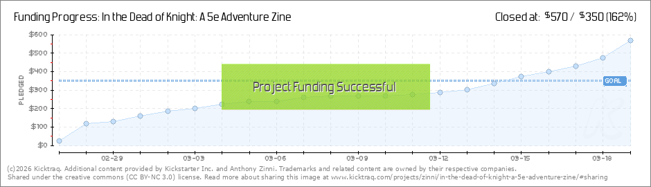 Wow, thank you again to everyone who has backed this project. Because of your generous support, In the Dead of Knight will be heading to print! I've had to set the excitement of reaching funding aside for a second, so I can share an update on the... (Read More)
