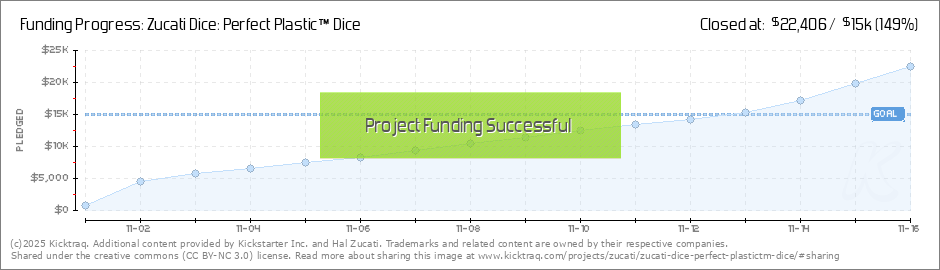 Coming right along. 15% to go. Almost there. Don't forget... once we get funded we can start talking about giant RPG dice, or fudge dice, or giant fudge dice.... mmmm fudge. Thanks everyone. - Hal (Read More)