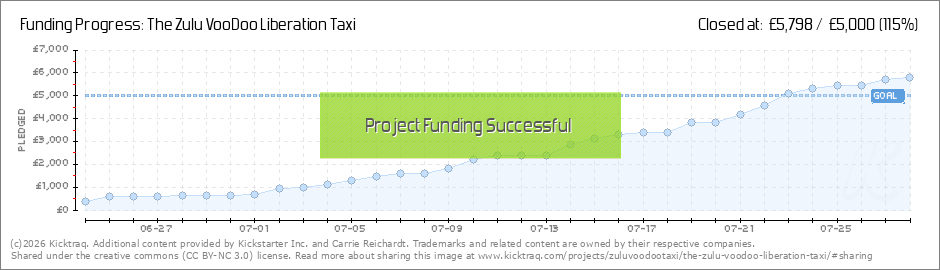 #ZuluTaxi Bill Poster Glastonbury 2015 Thanks a million to the early backers we are so grateful to be off the 0.00 mark. Work is pushing on in the hope that we raise enough to cover our cost and get this Taxi on the road. Thanks to all who are... (Read More)