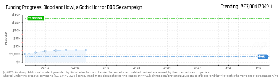 Help your backers reach your daily goals and help others see how you're doing. It's easy, with Kicktraq Mini.Here are a few quick snippits of code you can use to embed your personalized widget on your website, in your blog, and even on your favorite forum.